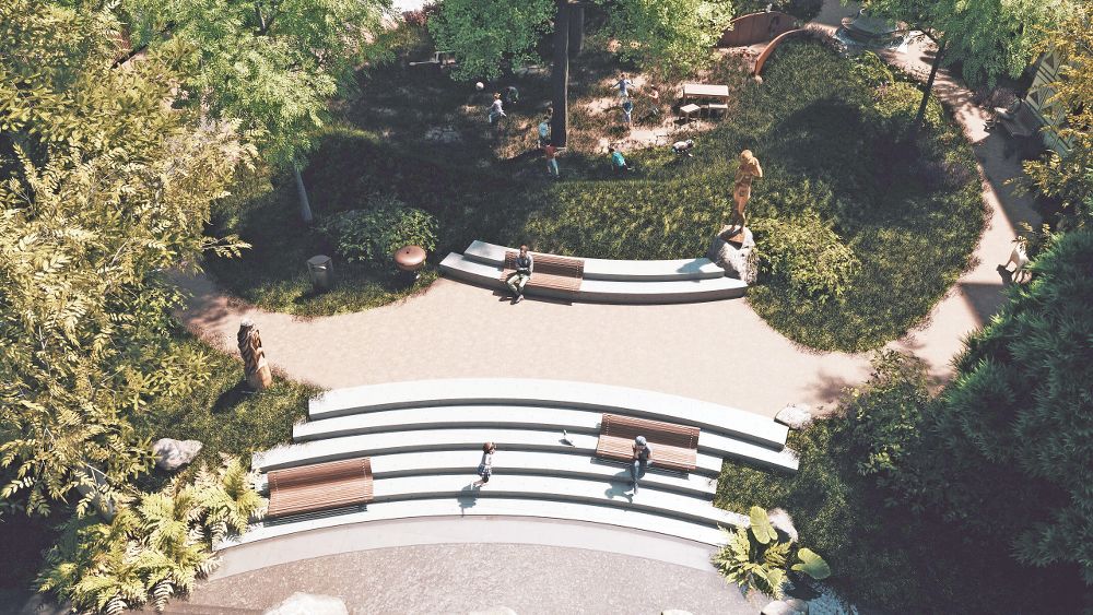 Návrh rovněž přidává městskému centru prostor s veřejnou zelení, který je sice nevelký, ale díky vzrostlým stromům, nápadité terénní modulaci a přítomnosti tekoucí vody nabízí značnou možnost pro relaxaci a odpočinek obyvatel a návštěvníků Brozan.