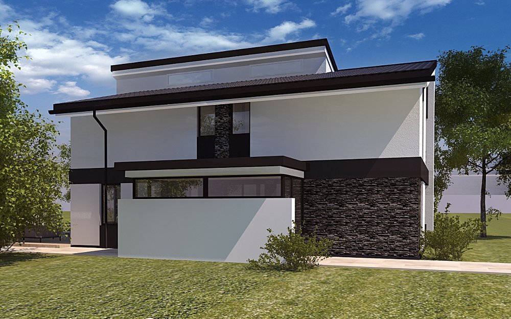 Dům s dvěmi uskočenými pultovými střechami s výraznou černobílou barevností, který se hodí spíše do příměstských částí. Tento rodinný dům se nalézá v Horních Počernicích u Prahy. Má velký obývací prostor s velkými posuvnými dveřmi orientovanými na jihovýchod. Velká kuchyně se zázemím, spíží a s ostrůvkem a krásné velkorysé schodiště.